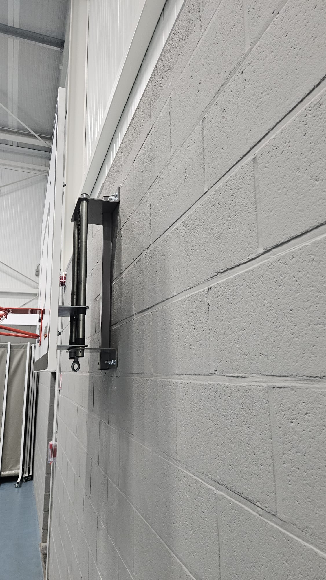 Wij monteerden onze robuuste basketbal wandinstallatie G8248 met basketbal oefenborden B1714 aan een bestaande wand. Met hoogteverstelling om de ringhoogte snel te veranderen van 260 cm voor kinderen naar een wedstrijdhoogte van 305 cm. Deze solide constructie van gepoedercoate stalen profielen voldoet aan de eisen van DIN EN 1270. Met bijhorende basketbalring B1701 en basketbalnet B1728 ontstaat er een ideale basketbal trainingsomgeving.
