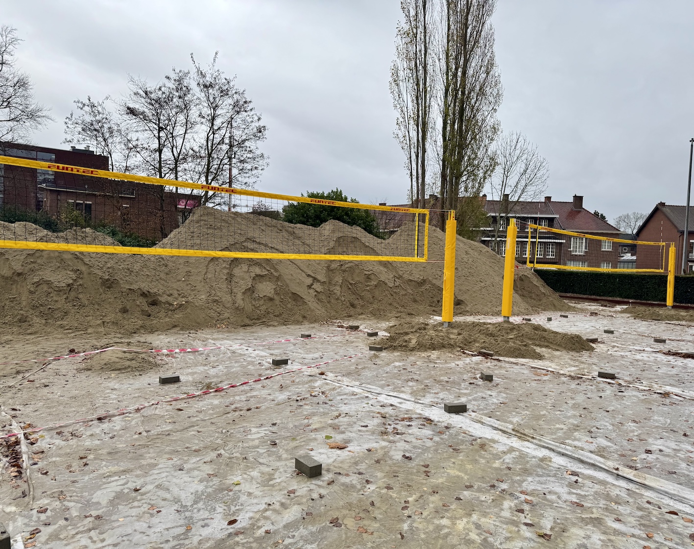 Tijdens donkere dagen dromen van outdoor sport dankzij onze plaatsing tijdens de wintermaanden. Deze secundaire school koos voor onze kwaliteitsvolle beachvolleybal installatie PRO BEACH (art. V1838) met bijhorend Funtec net Pro Beach (art. V2339). Onze kolombeschermkussens PRO (art. V1644) garanderen veilig spelen. Tot slot werden ook netantennes (art. V2306), zandharken (art. U8214) en speelveldbegrenzing (art. V2303) voorzien.