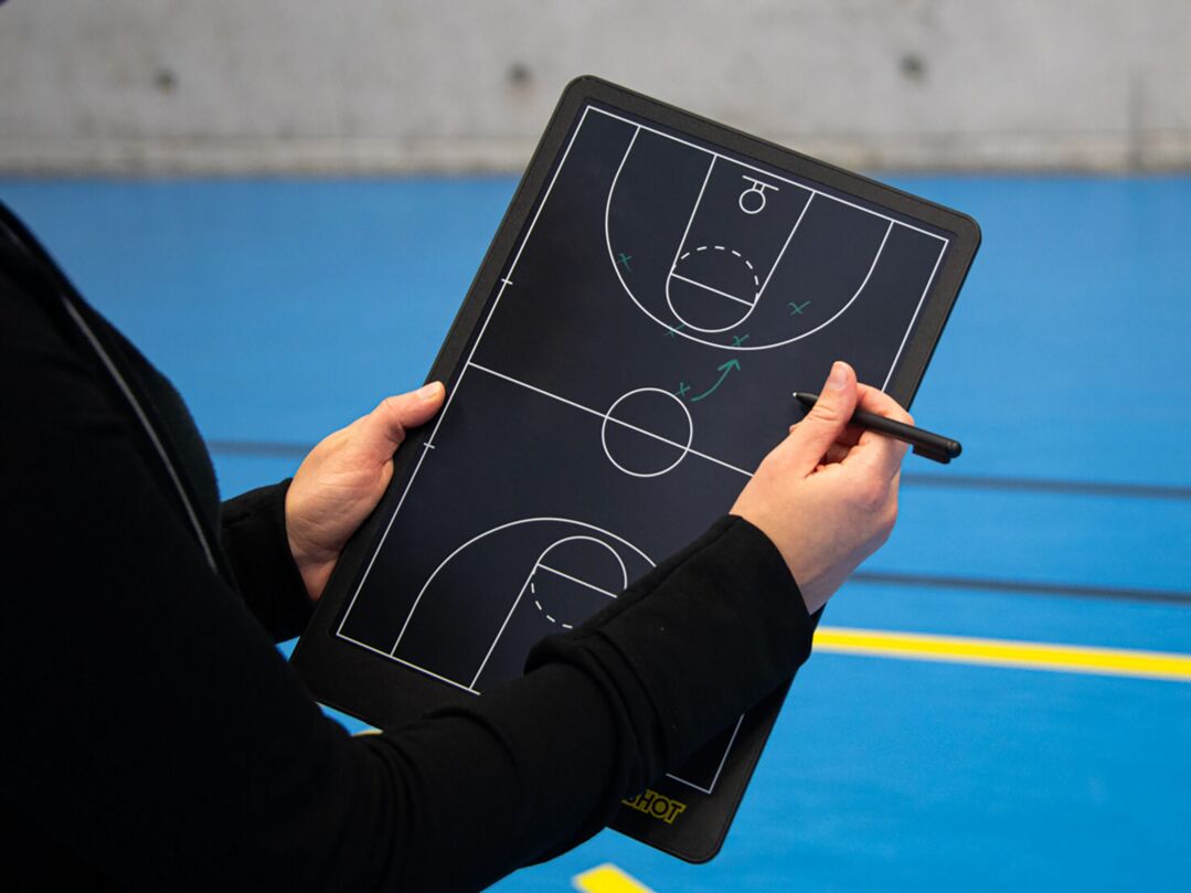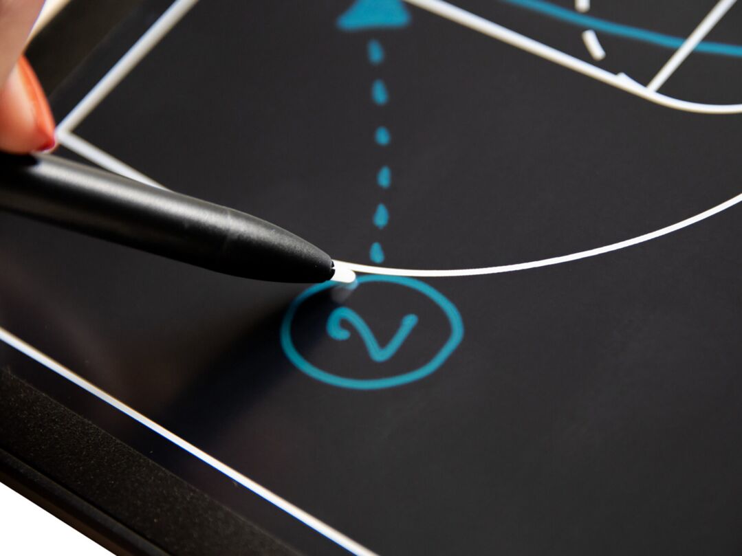 De Powershot® tactiektafel is perfect voor het maken van aantekeningen en conceptschetsen voor verschillende sporten. Hiervoor is geen krijt of andere stiften nodig, aangezien de tafel al een geïntegreerde pen heeft, vergelijkbaar met een tablet. Met deze pen kan op de tafel worden geschreven en vervolgens, met behulp van de wisser onderaan in het midden van de tafel, weer worden verwijderd. Om het geschrevene te beveiligen, kan de wisser worden vergrendeld. Dit kan worden gedaan met een schuifregelaar aan de achterkant van de tafel. Het lichte gewicht en het prettige formaat maken het vervoer gemakkelijk en eenvoudig, waardoor het de perfecte metgezel is voor trainers bij elk thuis- of uitwedstrijd.