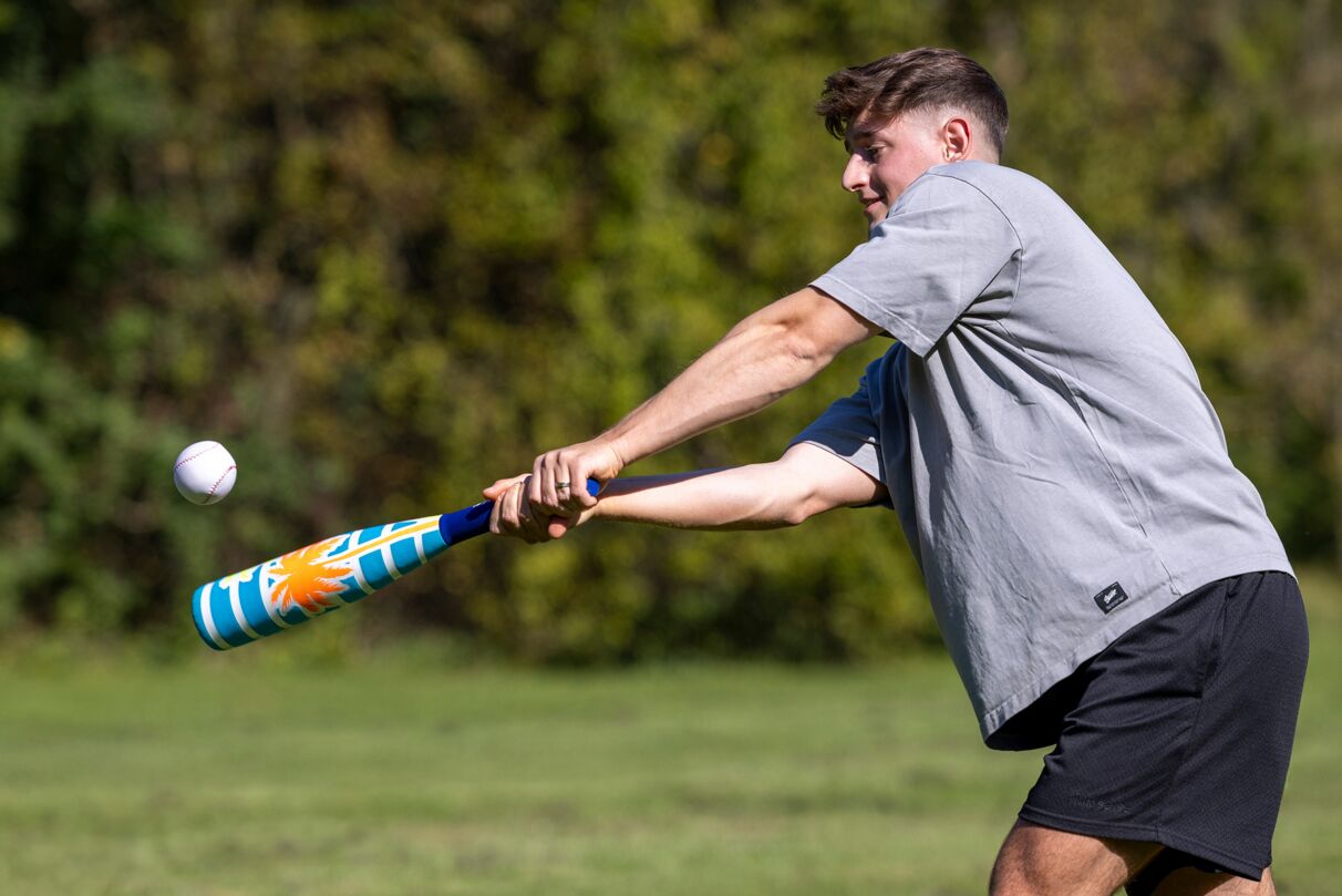 Zachte honkbalknuppel van Schildkröt (62 cm, 200 g). De kern is een dunne plastic buis die is omhuld met schuim en vervolgens bedekt met gripvast neopreen. Zo kunnen ook de allerkleinsten op een veilige manier kennismaken met deze toffe sport. De set is zoutwaterbestendig en daarom ook een populaire metgezel voor strand en zee. Het stroeve, textiele neopreen ligt goed en veilig in de hand. Door de zachte constructie is de set veilig in gebruik.